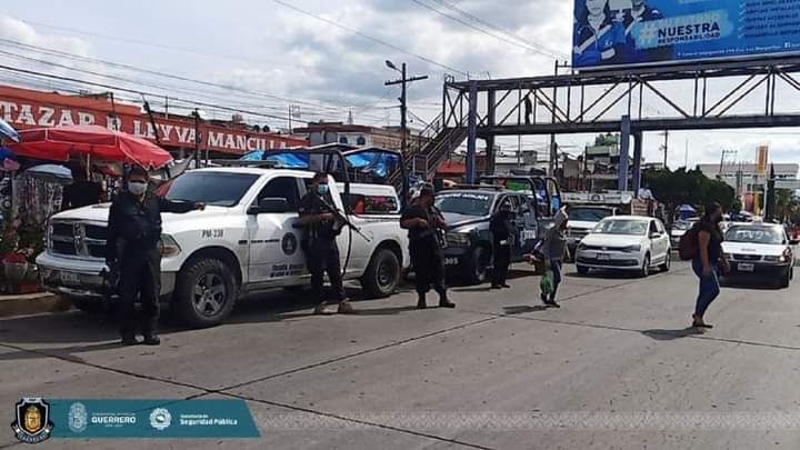 Policías Estatales en coordinación con elementos de la Fiscalía General del Estado, implementan un operativo de seguridad y vigilancia en el interior e inmediaciones del Rastro Municipal y Mercado Baltazar R. Leyva Mancilla, en Chilpancingo de los Bravo, a fin de prevenir e inhibir la comisión de delitos.