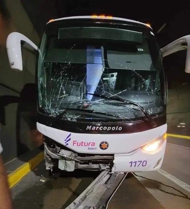 Acapulco,Gro., a 01 de octubre del 2023.- Durante la noche de este domingo, se registró un choque al interior del Maxitunel en donde se vio involucrado un autobús de pasajeros de la línea Futura.