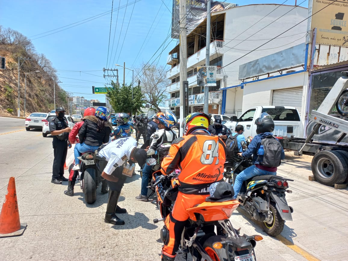 Acapulco, Gro., 23 mayo de 2022.- Derivado de los operativos realizados por la Secretaría de Seguridad Pública, ante la concentración de motociclistas en Acapulco, del 19 al 22 de mayo, se aplicaron 147 infracciones y se trasladaron 50 motocicletas al corralón.