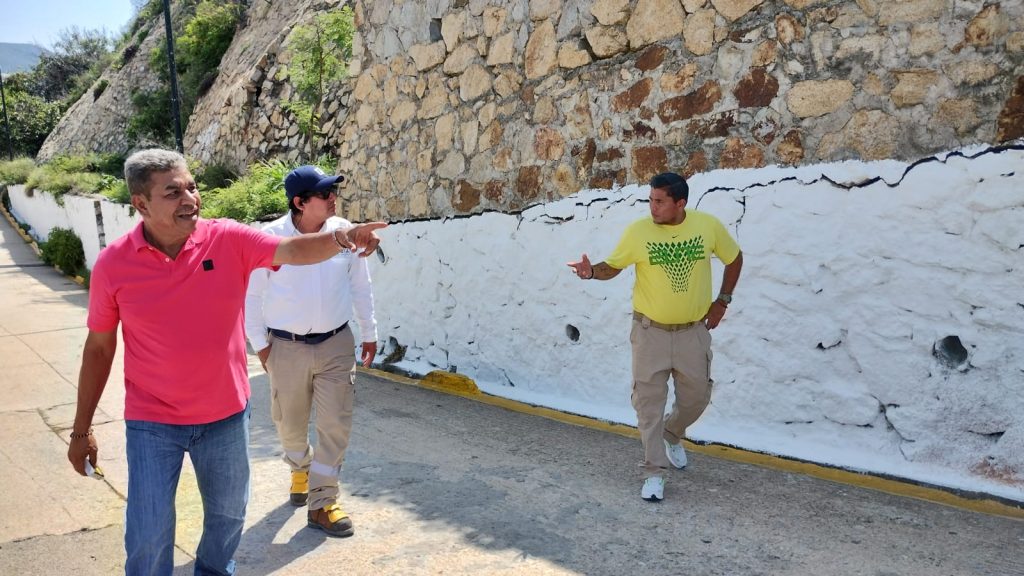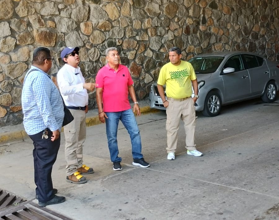 El Coordinador General de Protección Civil y Bomberos, Efrén Valdez Ramírez, junto a personal del área Técnica, y el apoyo del Colegio de Ingenieros Arquitectos del Estado de Guerrero, realizan la inspección en la avenida Adolfo López Mateos, en fraccionamiento Las Playas.