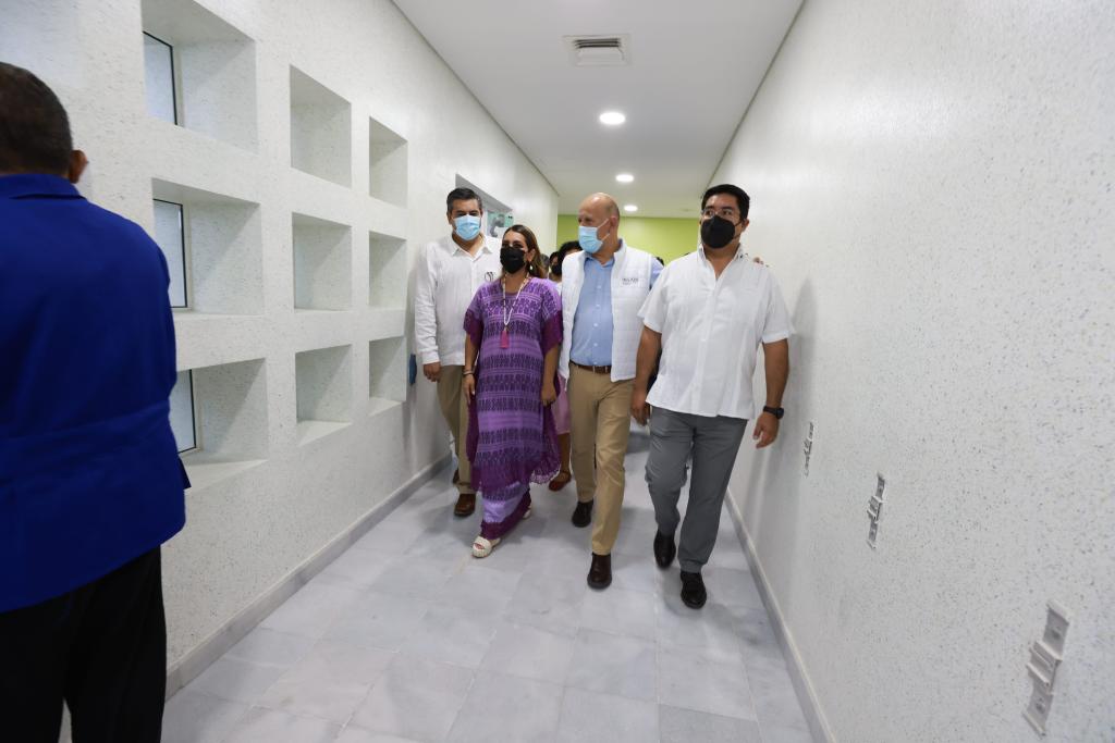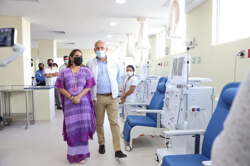 En un primer punto, la mandataria estatal en compañía del director general del Instituto de Salud para el Bienestar (Insabi), Juan Antonio Ferrer Aguilar, visitó las instalaciones de la Unidad de Hemodiálisis de Acapulco, la cual se encuentra en fase de prueba, con un avance del 95 por ciento.