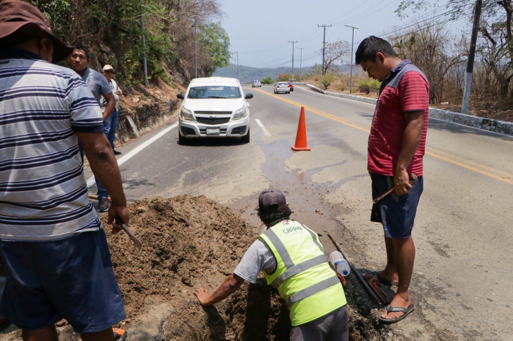 Acapulco, Gro., 30 de mayo de 2023.- Funcionarios de la Comisión de Agua Potable y Alcantarillado del Municipio de Acapulco (CAPAMA), además de supervisar los trabajos de desazolve que se llevan a cabo en el poblado La Venta, y la reparación de una fuga de agua potable en la avenida Escénica.