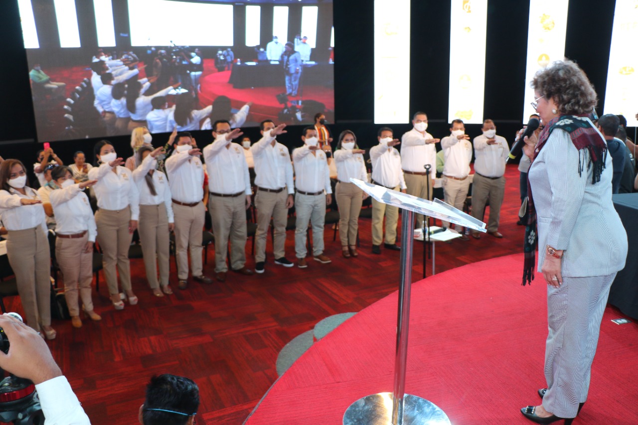 Acapulco, Gro.,18 de junio de 2021.- La presidenta municipal Adela Román Ocampo tomó protesta al nuevo comité directivo de la Cámara Nacional de la Industria de Restaurantes y Alimentos Condimentados (Canirac), a quienes deseó éxito y exhortó a seguir trabajando de la mano, respetar los protocolos sanitarios y hacer frente a la pandemia de COVID-19.