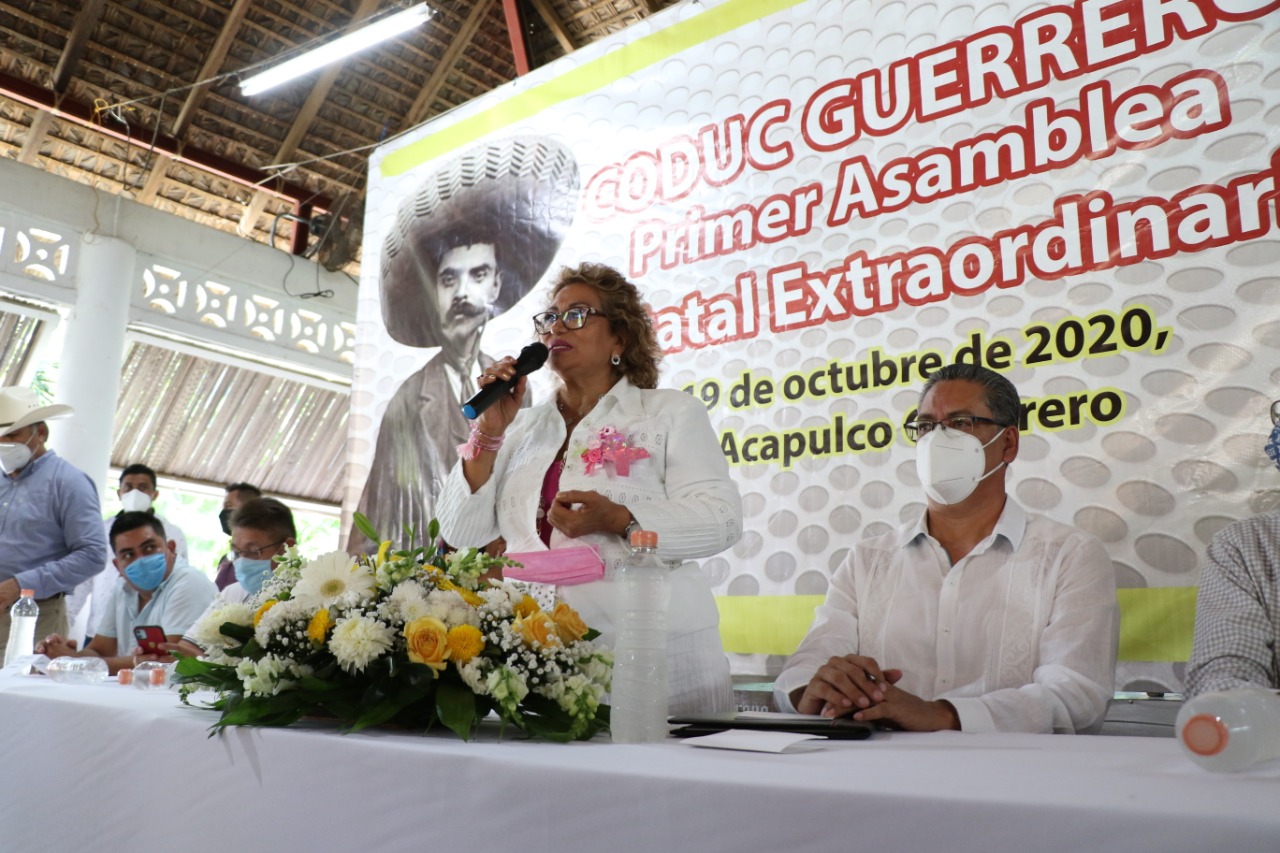 Acapulco, Gro., 19 de octubre de 2020.- En compañía del secretario general del Comité Ejecutivo Nacional de la Coalición de Organizaciones Democráticas Urbanas y Campesinas (CODUC), Marco Antonio Ortiz Salas, la presidenta municipal Adela Román Ocampo tomó protesta a la nueva directiva estatal de la organización, a cuyos integrantes llamó a sumar esfuerzos y trabajar por el bienestar de los guerrerenses.