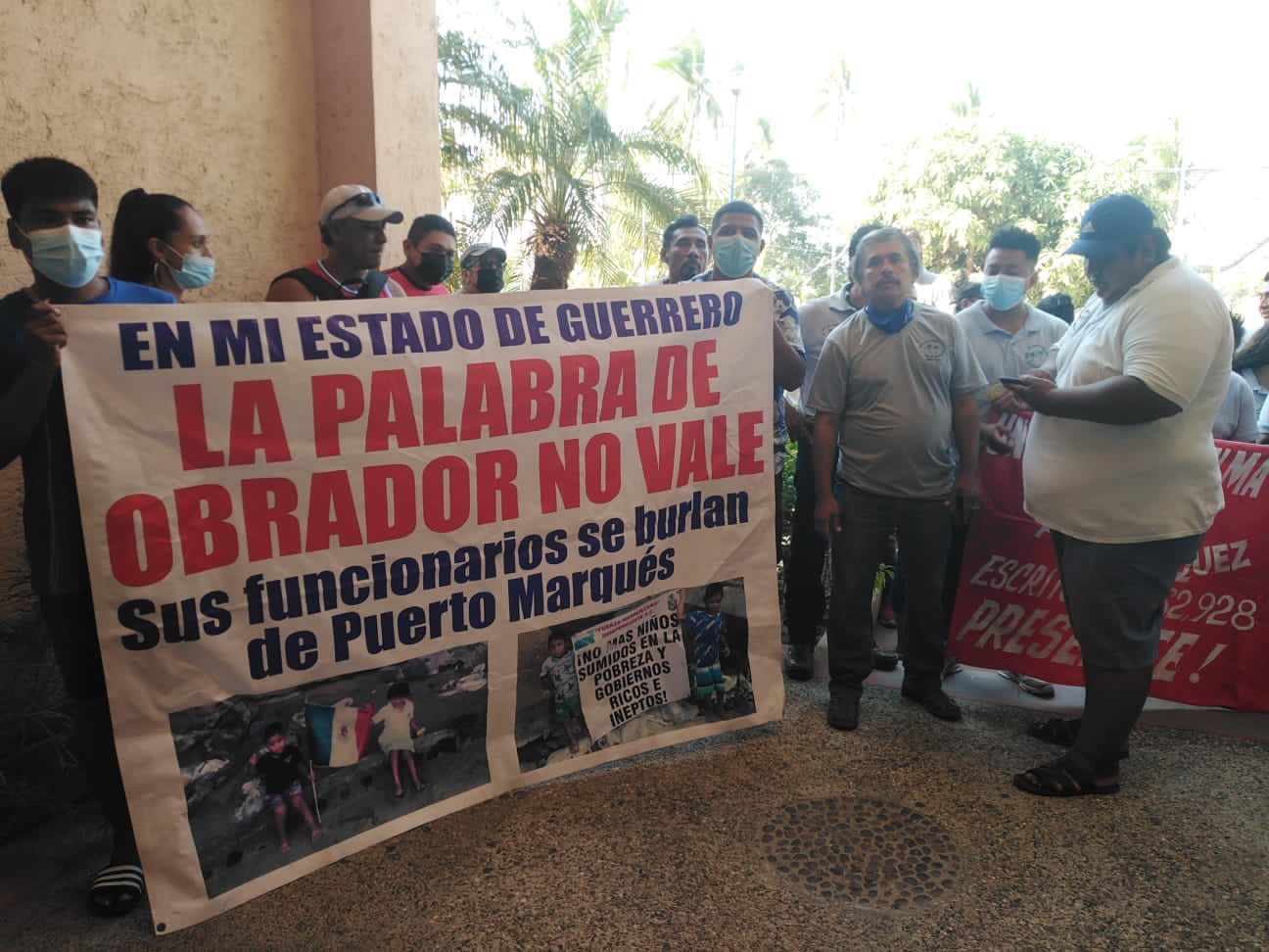 Acapulco, Gro., 06 de abril de 2022.- Prestadores de servicios turísticos de Puerto Marqués se manifestaron en las oficinas de la Promotora Turística (Protur) para exigir avances en la reconstrucción de restaurantes afectados en la zona del muelle de la Marina Majahua.