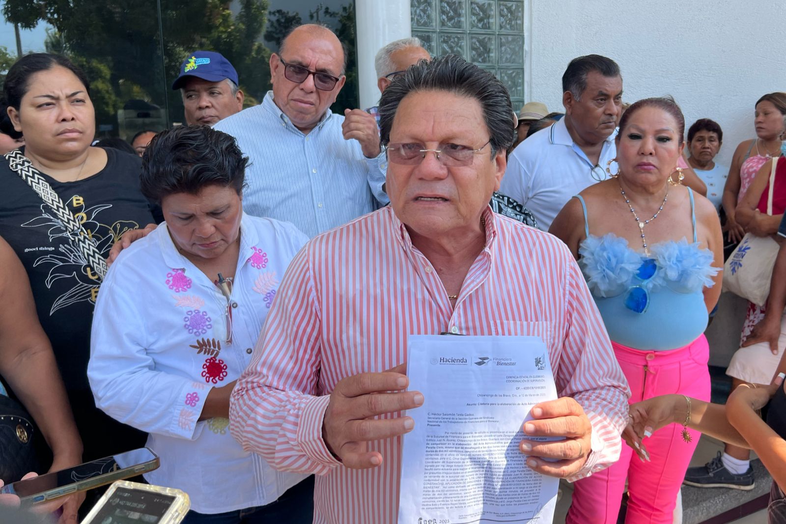 Acapulco; Gro., a 13 de marzo del 2025.- Personal de la Financiera para el Bienestar (FINABIEN) realizaron una protesta y cerraron las instalaciones del Palacio Federal en Acapulco para exigir la destitución del gerente estatal de la financiera, Jorge Antonio Alcaraz Romo.