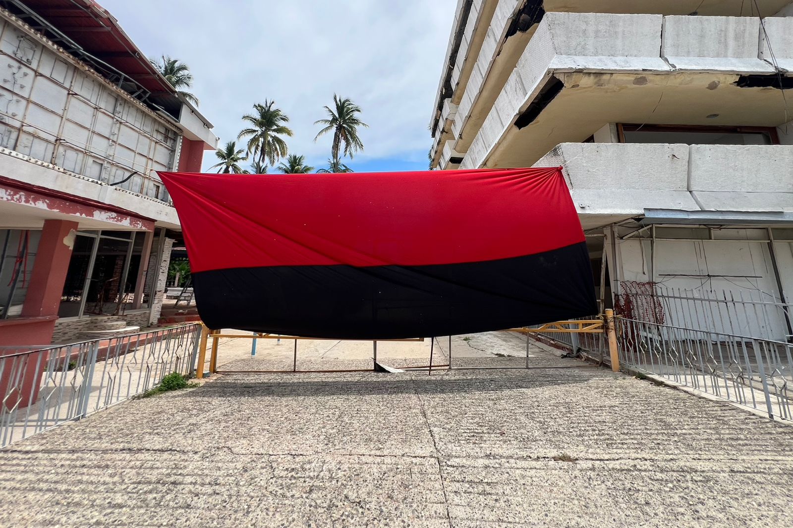 Los trabajadores colocaron banderas rojinegras en el acceso principal, donde exigen el pago de salarios atrasados que ascienden a más de tres millones de pesos, según el secretario general de la Sección 12 de la Confederación de Trabajadores de México (CTM), Rodolfo Escobar Ávila