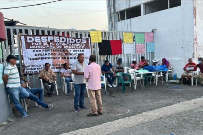 Trabajadores del ayuntamiento agremiados a la sección 23 del Sindicato Independiente de Acapulco tomaron el acceso principal de las oficinas de la ex Zona Militar para exigir el pago de su liquidación.