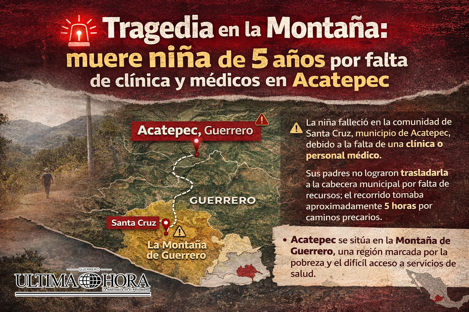 Redacción, a 04 de marzo de 2026.- Una niña de 5 años murió en la comunidad de Santa Cruz, municipio de Acatepec, en la región Montaña de Guerrero, ante la falta de una clínica y atención médica en la zona.