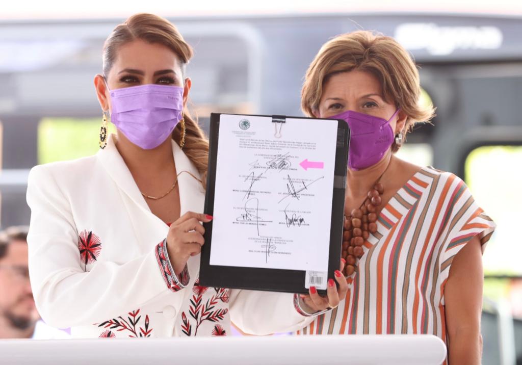 En el evento realizado en la Casa del Pueblo, con el gremio transportista, así como representantes populares y la sociedad civil organizada, Evelyn Salgado, firmó el decreto para la creación del programa de “Transporte Violeta en Guerrero”, con la Coordinadora para la Erradicación de la Violencia Feminicida del Gobierno de México, Flor Dessiré León Hernández, como testigo de honor.