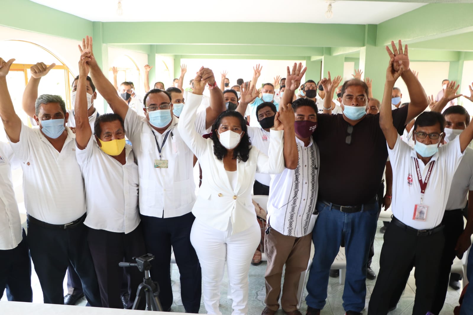 Los trabajadores del volante se dijeron convencidos de las propuestas de Abelina López Rodríguez, pues convergen con la ideas de progreso de la candidata y se dijeron seguros de que cuando sea primera edil porteña, trabajará de la mano con ellos.