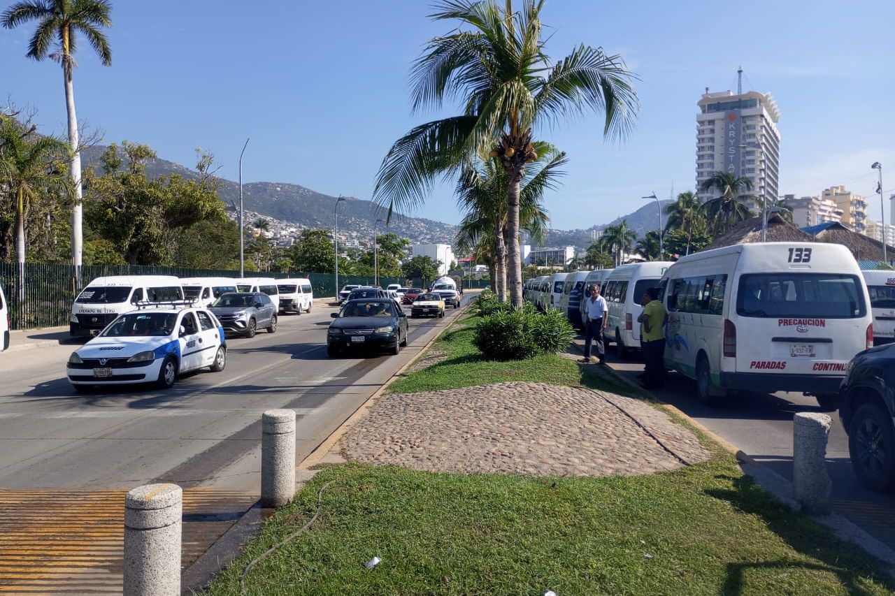 Acapulco; Gro.- Transportistas de taxis colectivos y urvans de distintas rutas se concentraron en la costera Miguel Alemán a la altura del Asta Bandera para denunciar irregularidades en la delegación de Transporte.