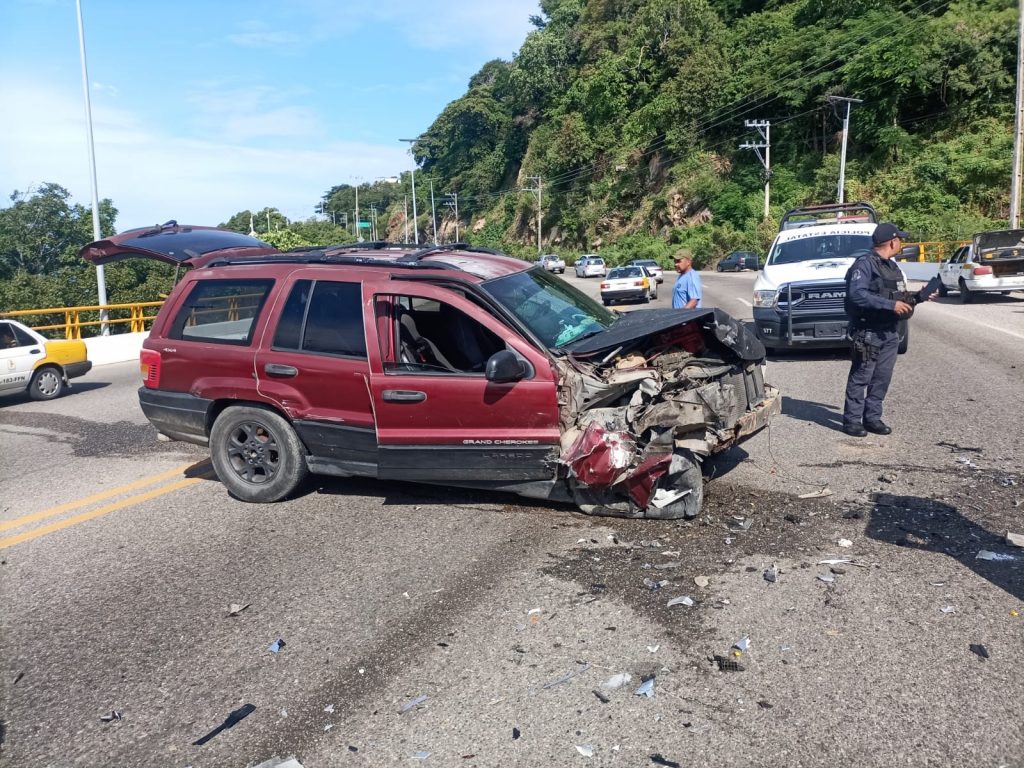 Acapulco,Gro., a 08 de septiembre del 2022.-Un fuerte choque automovilístico se registró la mañana de este jueves sobre la carretera Acapulco – Zihuatanejo, dejando como saldo tres personas lesionadas.