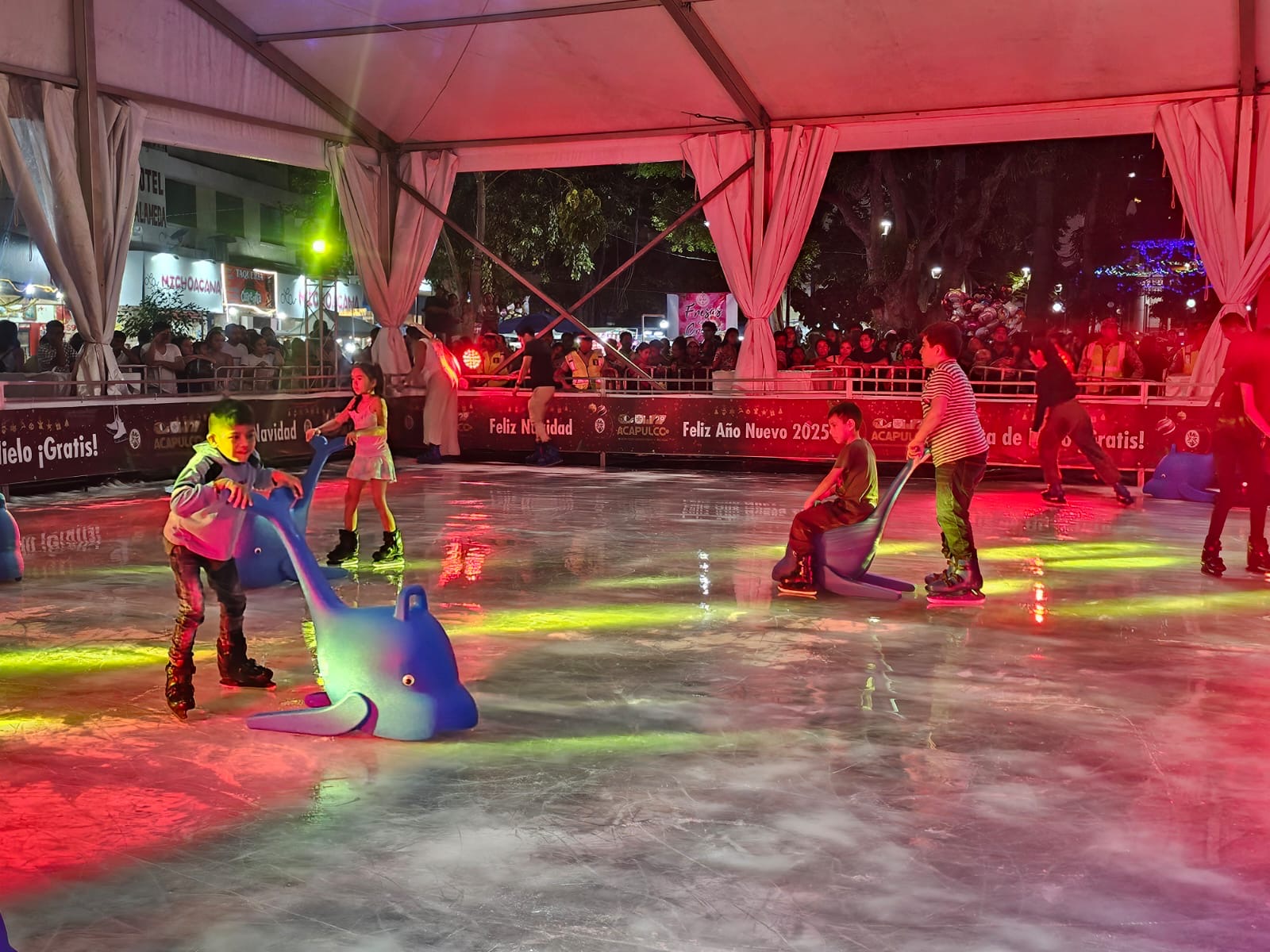 Miles de personas, entre acapulqueños y visitantes, se concentraron en el corazón de la ciudad, para disfrutar del “Festival Mágico Sobre Hielo”, con la presentación de patinadores de diferentes partes del mundo, quienes con sus acrobacias sorprendieron al público.