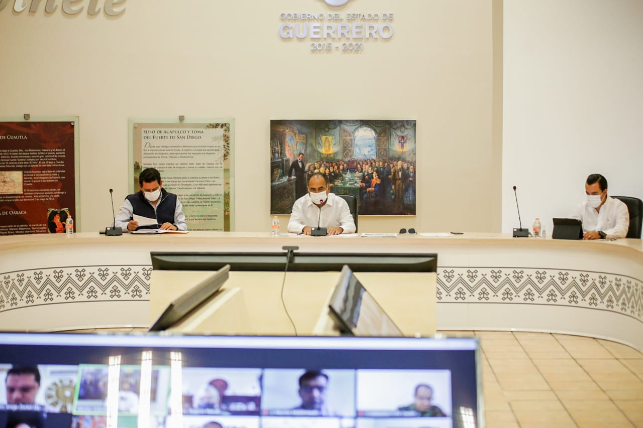 Chilpancingo, Gro., 9 de noviembre del 2020- El gobernador Héctor Astudillo Flores revisó con los integrantes de la Mesa de Coordinación para la Construcción de la Paz, los índices delictivos que se mantienen en Guerrero a la baja en un 17.88 por ciento con respecto al año pasado y se evaluaron las acciones de Ayuntamientos y de las autoridades civiles y militares, ante las nuevas medidas sanitarias publicadas en el Periódico Oficial del Estado, que entraron en vigor este lunes y estarán vigentes los próximos 15 días.