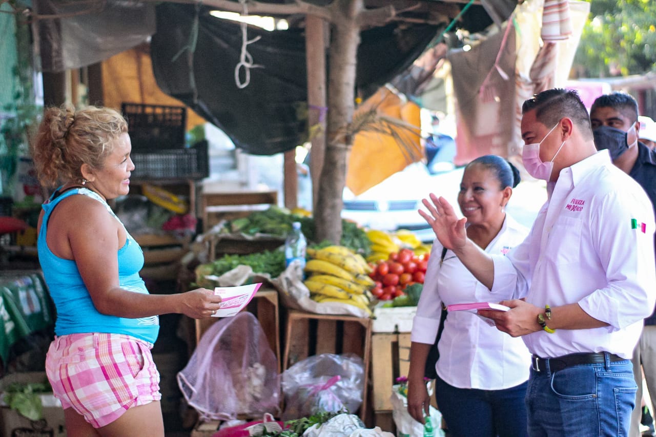 En el mercadito de la Alta Cuauhtémoc el candidato del partido rosa, Güero Alonso, les explicó cuáles son las acciones inmediatas y permanentes que su gobierno aplicará una vez llegue a la alcaldía de este municipio.