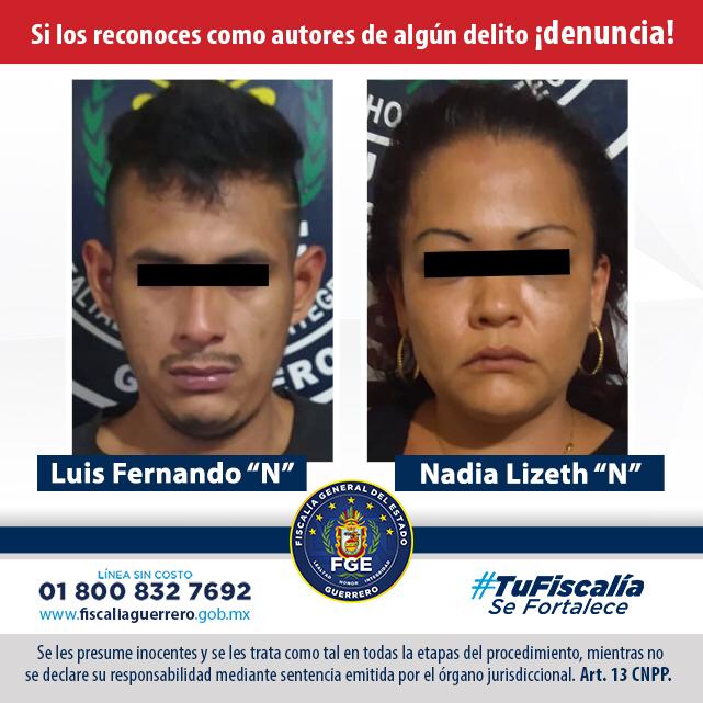 La Policia Ministerial dio cumplimiento a la orden de aprehensión en contra de la imputada y en Audiencia Inicial se aportaron los elementos probatorios de su participación en los delitos, dictando el Juez vinculación a proceso y otorgando cinco meses de investigación complementaria, quedando impuesta la medida cautelar de prisión preventiva e interna en el Centro de Reinserción Social de Acapulco donde también se encuentra Fernando “N”.