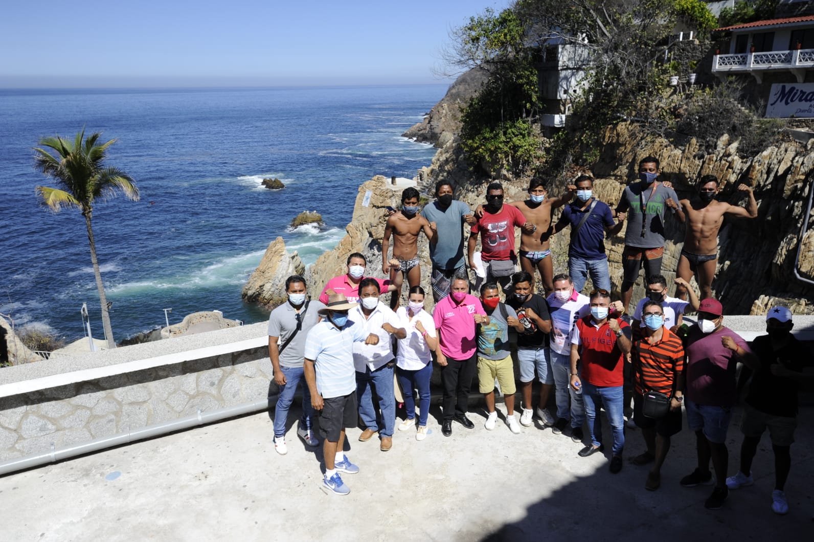 Acapulco, Gro., Mayo 04, 2021.- “Si las dependencias para atender las demandas de los clavadistas de La Quebrada nos cierran las puertas, entre todos ¡las pateamos hasta que las abran!”, les aseguró José Alberto Güero Alonso, candidato del Partido Fuerza Por México a la Presidencia Municipal de Acapulco a los integrantes de la Asociación de Clavadistas Profesionales de La Quebrada.