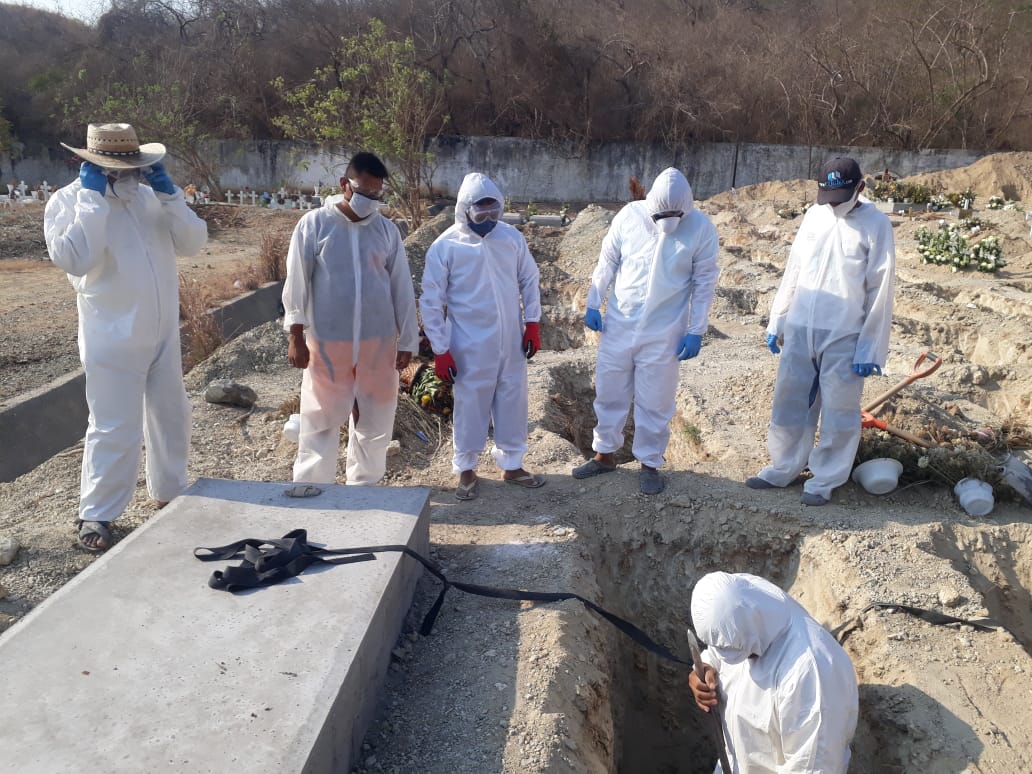 Sánchez Meza indicó que el personal encargado de realizar las inhumaciones en el panteón El Palmar, ha sido dotado de equipo de protección especial para cumplir con su tarea, cumpliendo así los protocolos sanitarios que recomiendan las autoridades de Salud, como el uso de trajes especiales y controlar el ingreso a los camposantos a fin de evitar aglomeraciones que sean factor de nuevos contagios.