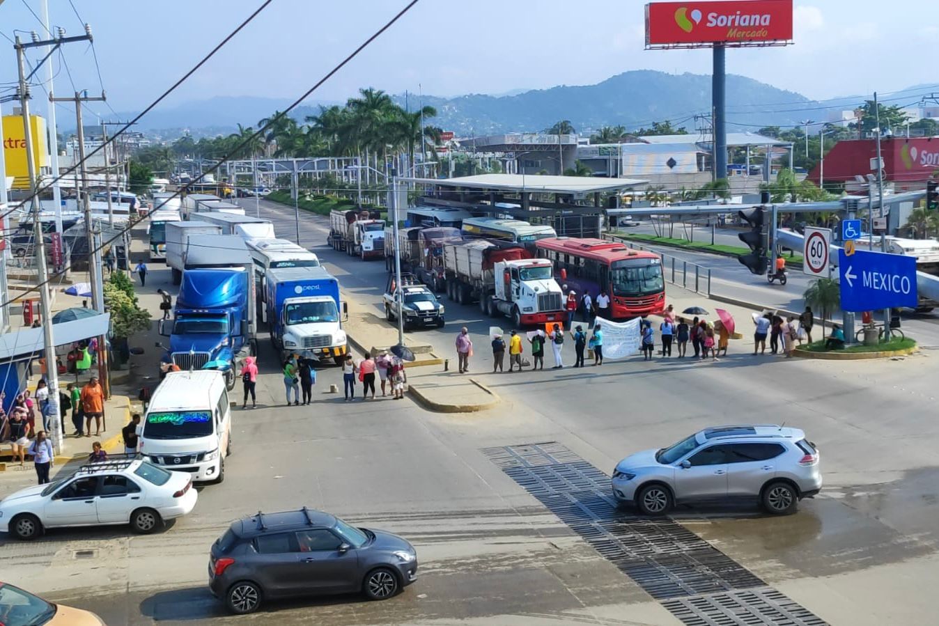 Un grupo de aproximadamente 40 vecinos de la riviera del río de la Sabana, en la colonia Ciudad Renacimiento, realizaron un bloqueo total en el bulevar Vicente Guerrero para exigir apoyos tras el impacto del huracán John en Acapulco.