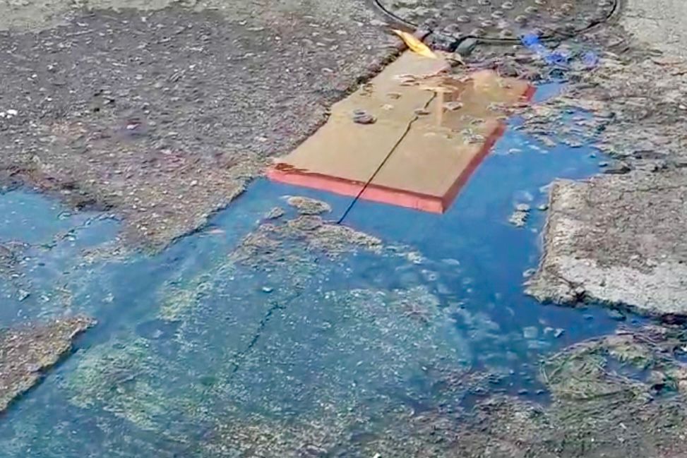 El escurrimiento llega hasta la avenida Costera Miguel Alemán, lo que ha generado un piso sumamente resbaloso y con tonalidad verdosa, debido a la lama que se ha generado.