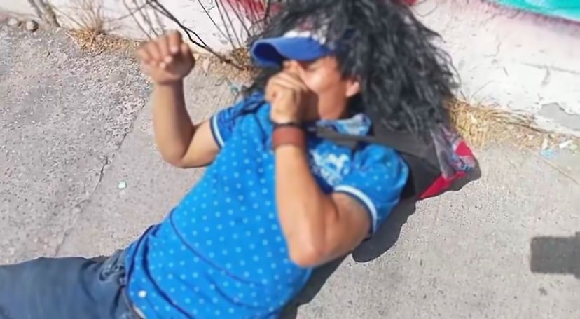 El hombre en todo momento continuaba drogandose ante la mirada de los ciudadanos, pues con una estopa inhalaba y se disfrazó con una peluca que llevaba entre sus ropas.