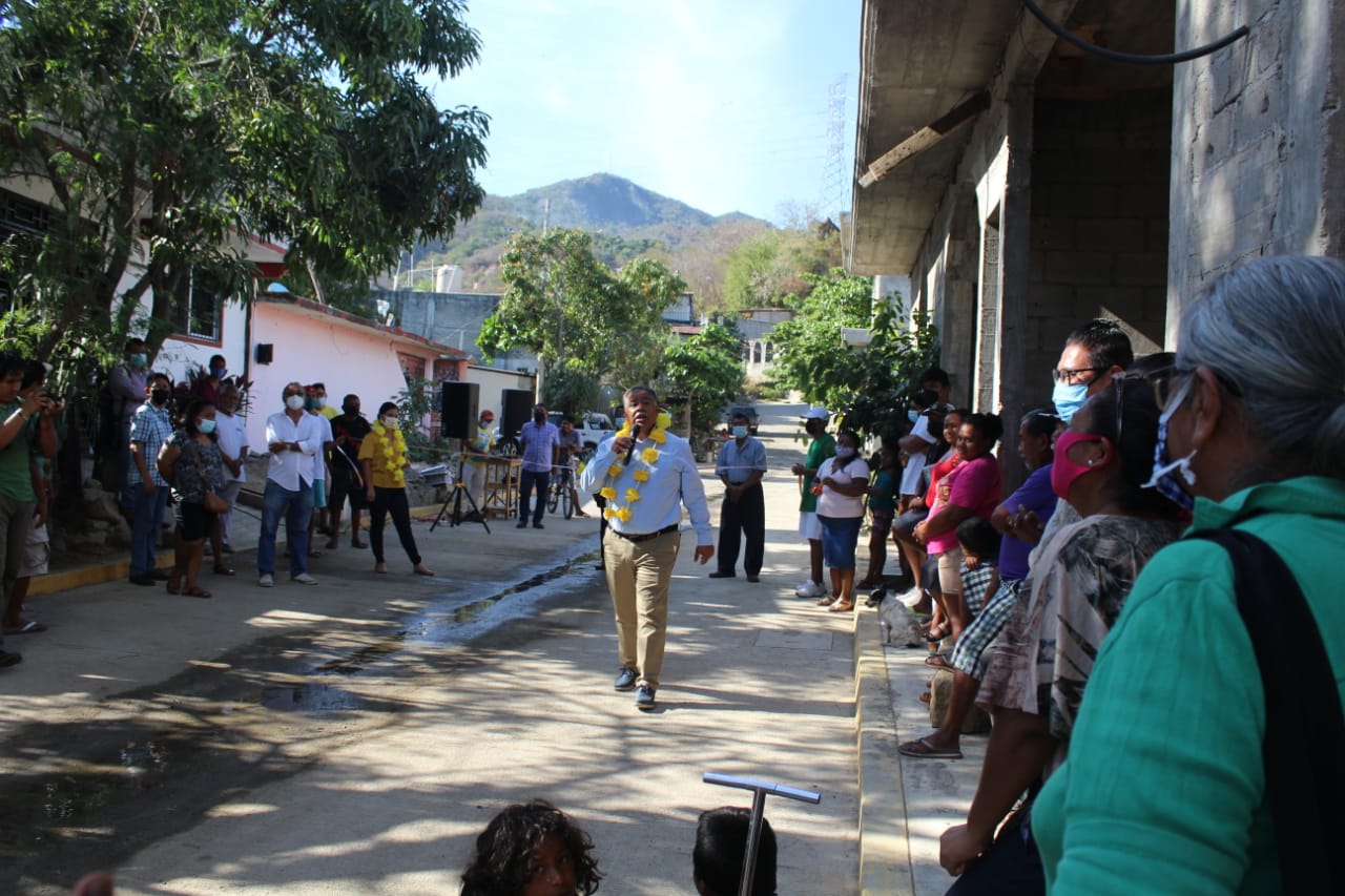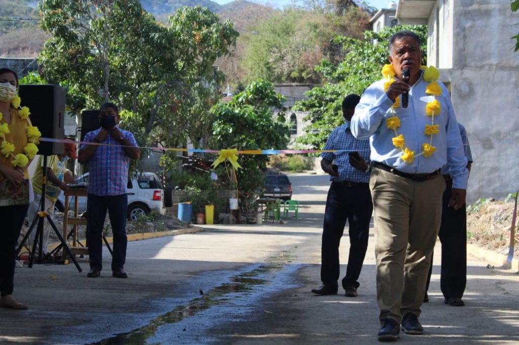 Acapulco, 19 de enero de 2021.- El regidor Víctor Aguirre Alcaide acompañó a la inauguración de la pavimentación de la calle democracia de la colonia 19 de noviembre, construido con concreto, para brindar estabilidad urbana en los caminos del puerto.