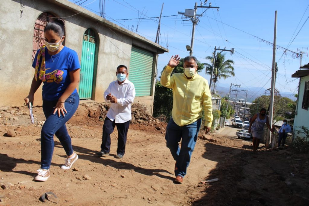 Acapulco, 27 de enero de 2021.- Después de muchos años de permanecer desatendidos, Víctor Aguirre Alcaide encabezó el banderazo del inicio de la construcción de la calle Miguel Hidalgo de la colonia Mirador del Coloso.