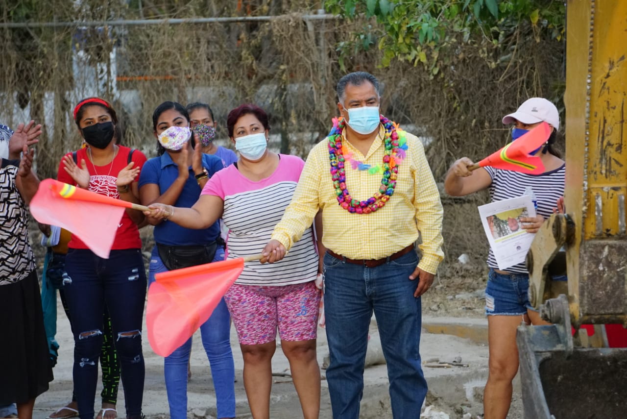 Acapulco, 27 de febrero de 2021.- Con el objetivo de mejorar y elevar la calidad de vida de las familias acapulqueñas, Víctor Aguirre Alcaide dio el banderazo de inicio a los trabajos de pavimentación de la calle La Venta de la colonia Flores con concreto hidráulico.