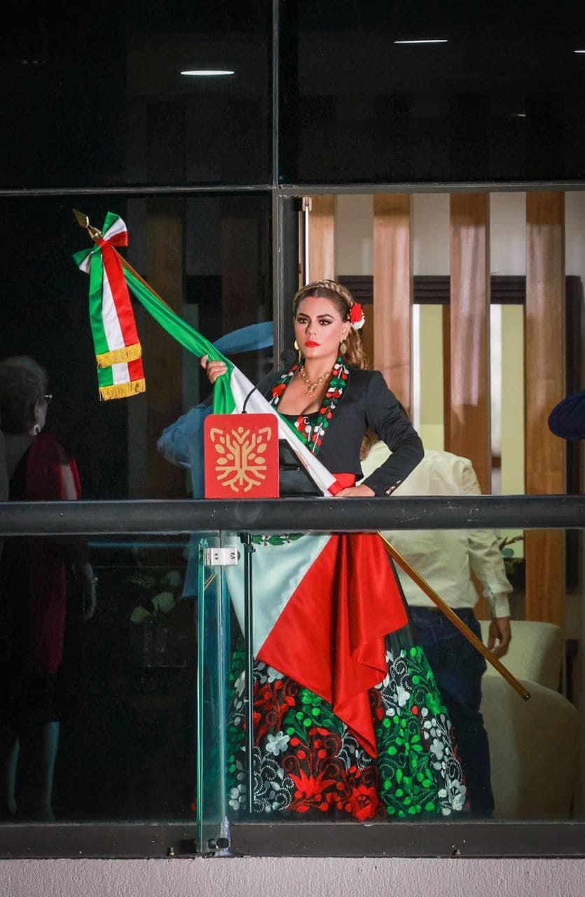 Al filo de las 10:30 de la noche, y acompañada por representantes del Poder Judicial y Legislativo, así como por mandos militares y navales, la gobernadora Evelyn Salgado Pineda recibió el lábaro patrio. Desde el balcón del Edificio Centro, evocó la memoria de los héroes de la independencia con la arenga de: “¡Viva la justicia! ¡Viva la paz! ¡Viva la Libertad! ¡Viva Guerrero! ¡Viva la independencia! ¡Vivan los héroes que nos dieron patria y libertad! ¡Viva Guerrero! ¡Viva México!”.