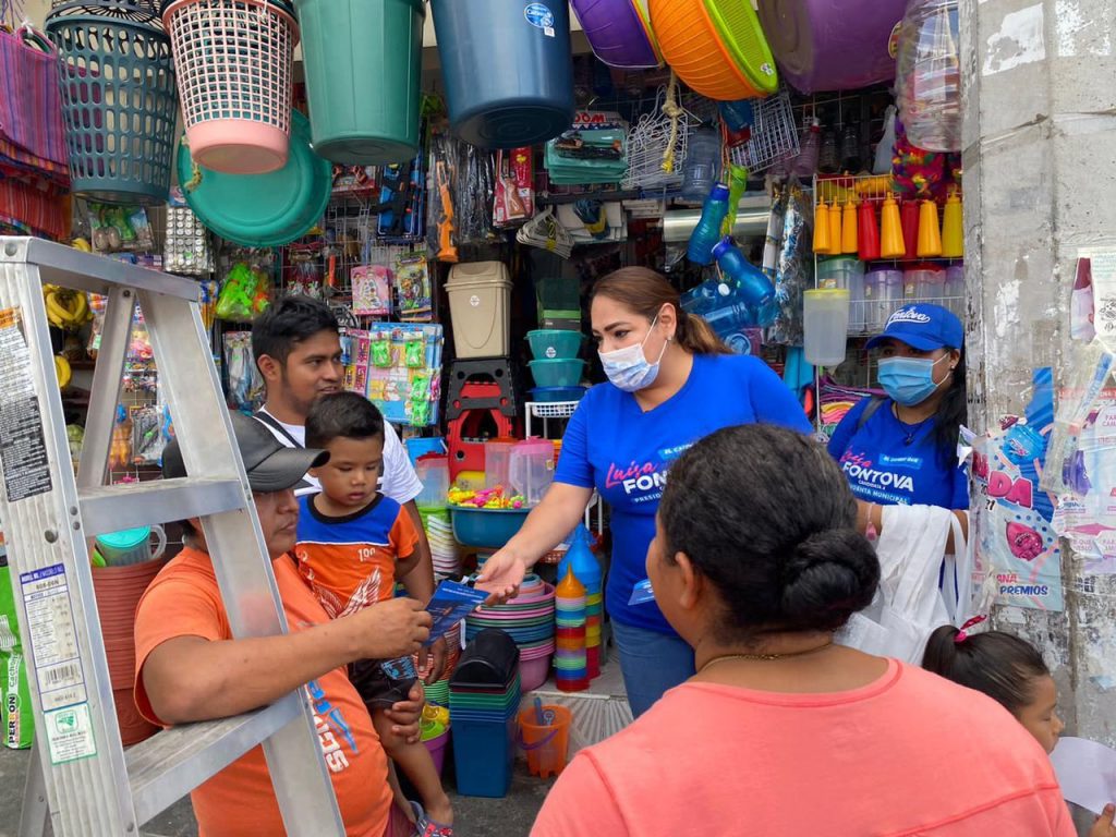 La candidata a la alcaldía de Acapulco por el Partido Acción Nacional, Luisa Fontova, realizó un recorrido por la calle principal y el mercado de El Coloso.