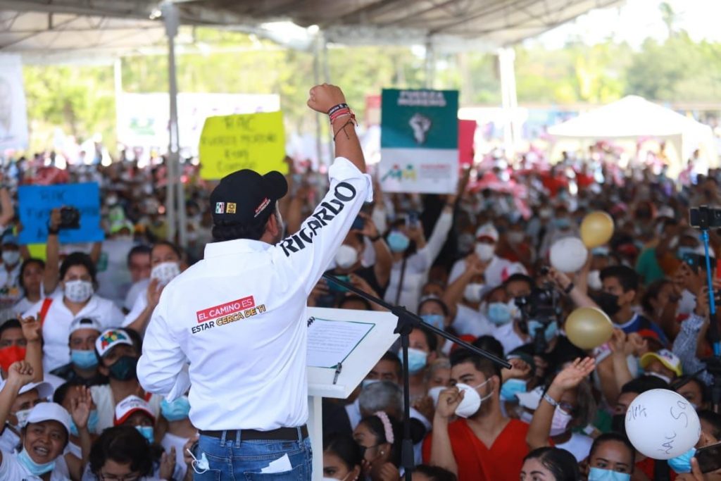 Acapulco, Gro. Mayo 30 del 2021.- Al cerrar campaña proselitista en busca de la diputación local por el séptimo distrito de Acapulco, el candidato del PRI-PRD, Ricardo Astudillo Calvo, llamó a la población a utilizar la credencial de elector para impedir que a Guerrero se lo lleven entre las patas.