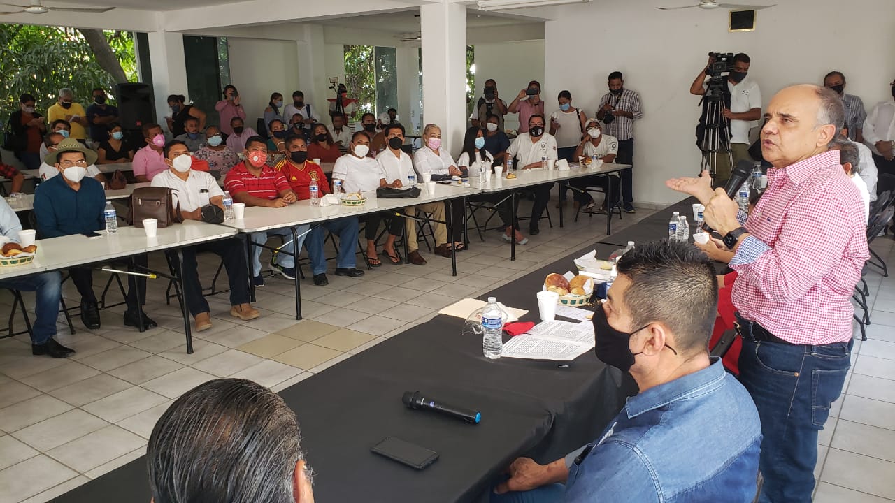 Acapulco, Gro., a 31 de marzo de 2021.- Esta mañana, el Senador Manuel Añorve Baños sostuvo un encuentro con integrantes de Sindicatos, líderes obreros, empresarios y representantes sociales de la Confederación de Trabajadores Mexicanos (CTM), ahí señaló que está haciendo campaña sin candidato a la gubernatura de Guerrero, pues con ello, está contribuyendo a que su partido pueda ganar en las elecciones del próximo seis de julio.