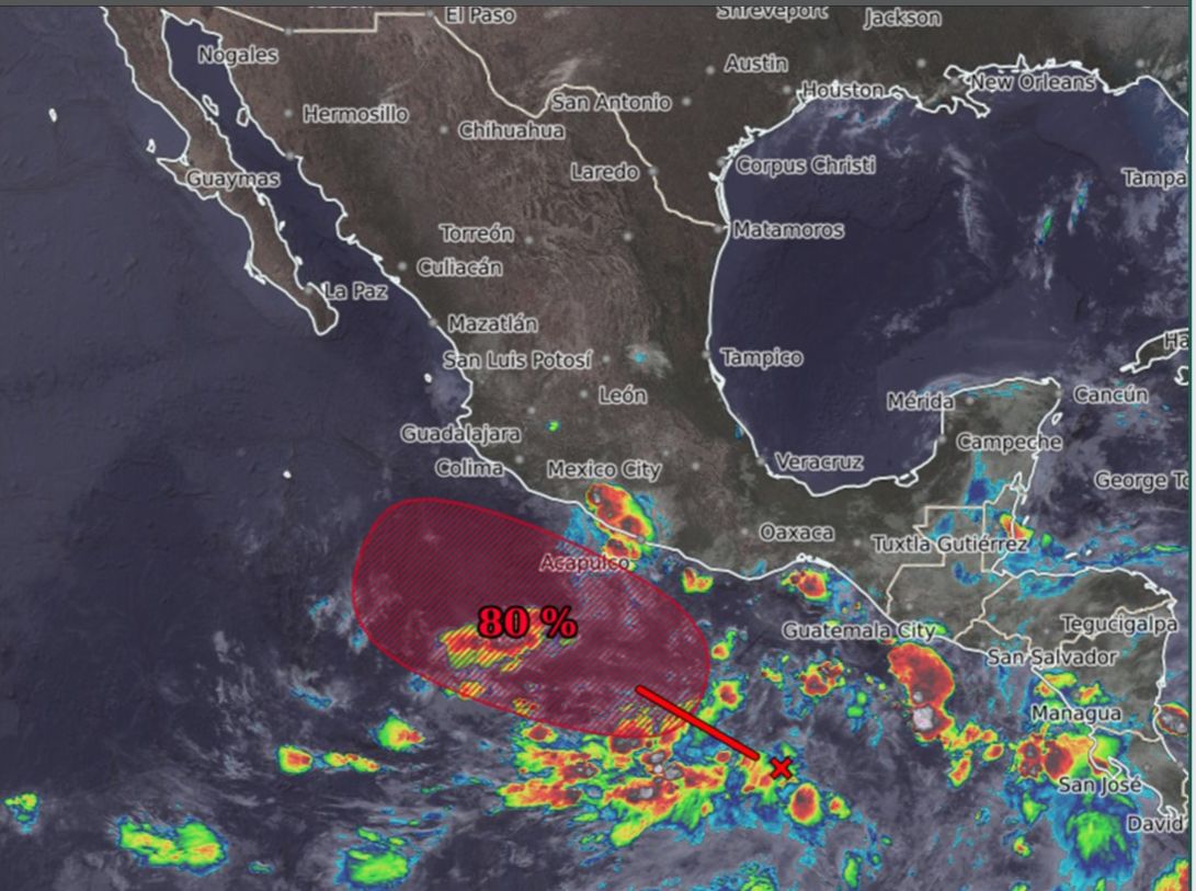 El SMN añadió que se prevé que evolucione a ciclón tropical durante este fin de semana frente a las costas de Guerrero y Michoacán.